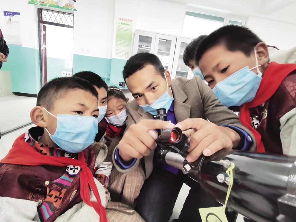 瑪沁縣下大武鄉(xiāng)寄宿學(xué)校的天文興趣班里,在老師的帶領(lǐng)下牧區(qū)孩子通過天文望遠鏡窺探宇宙的秘密。