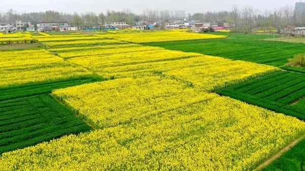 春到桃灣村,農(nóng)田里小麥苗綠油油、油菜花金燦燦,無人機鏡頭下,草木展露綠意,沃野五彩斑斕,處處生機勃勃,一派盎然新意,田野、村莊、道路、勞作的村民相映成景,構(gòu)成一幅美麗的生態(tài)鄉(xiāng)村畫卷。(圖文/田凱平)