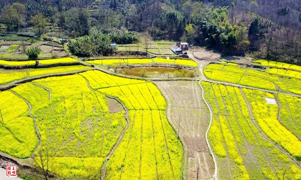 陽春三月,家鄉(xiāng)的花事便如秋分時節(jié)的錢塘潮,一波一波的涌來。在五顯鎮(zhèn),不同于皖南旅游景點的菜花一眼望不到邊,這里無論在水庫邊,還是在馬路旁,金黃的油菜花和青綠的水田層疊相間,錯落有致。