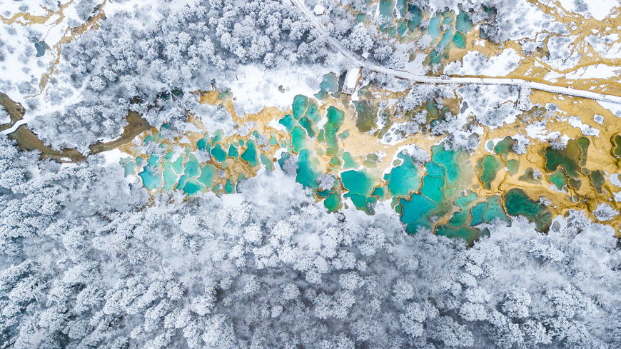 爭(zhēng)艷彩池雪景 姜躍斌 攝
