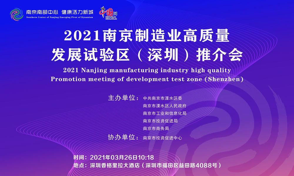 3月26日上午,2021南京制造業(yè)高質(zhì)量發(fā)展試驗(yàn)區(qū)推介會(huì)將在深圳舉辦。
