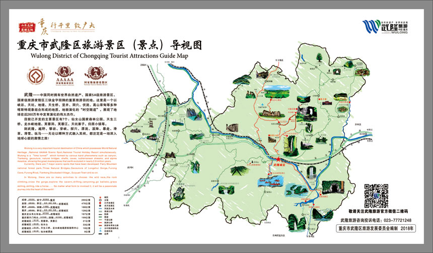 (五)高標(biāo)準(zhǔn)提升文旅服務(wù)品質(zhì)。一是強(qiáng)化市場監(jiān)管執(zhí)法。武隆創(chuàng)新綜合市場監(jiān)管體制,成立文化旅游綜合執(zhí)法支隊(duì),實(shí)施了“1+3+N”旅游綜合執(zhí)法體制改革,今年開展文化旅游市場整治,辦結(jié)案件9件,收繳非法出版物372件,罰款50元;開展旅游秩序?qū)m?xiàng)整治,制止攔路招客攬客等不文明行為200余人次,辦結(jié)游客投訴14件。調(diào)解游客與旅行社因疫情解除旅游合同而引發(fā)的糾紛7件,涉及金額27萬元。二是大力推進(jìn)廁所革命。全區(qū)建成旅游廁所84座,并全部完成電子地圖上線工作。A級旅游區(qū)廁所全部增設(shè)第三衛(wèi)生間,基本解決游客如廁難問題。四是推進(jìn)智慧全域旅游建設(shè)。喀斯特旅游區(qū)、仙女山旅游度假區(qū)以及土地鄉(xiāng)等3個(gè)鄉(xiāng)鎮(zhèn)的智慧鄉(xiāng)村旅游建設(shè),成功列入第一批全市智慧旅游景區(qū)(度假區(qū))創(chuàng)建名單。與騰訊公司聯(lián)合打造全國首個(gè)區(qū)域級全域智慧旅游平臺“一部手機(jī)游武隆”,有序推進(jìn)智慧景區(qū)(度假區(qū))、智慧鄉(xiāng)村旅游建設(shè),全區(qū)智慧旅游“一張網(wǎng)”加快形成。
