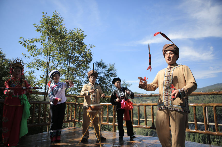 (四)高質(zhì)量推進(jìn)文旅事業(yè)繁榮。一是保護(hù)與挖掘傳統(tǒng)文化。成功申報(bào)后坪天池壩、浩口田家寨、土地犀牛寨、滄溝大田村等4個(gè)國家級傳統(tǒng)村落;完成羊角文物拆遷保存和三峽后續(xù)項(xiàng)目申報(bào),千里烏江羊角第一古鎮(zhèn)去年成功開街。二是文化工程和文化陣地建設(shè)扎實(shí)推進(jìn)。大力推進(jìn)“文圖”兩館總分館制建設(shè)。建成一級文化館、二級圖書館、區(qū)級博物館各1個(gè)、24小時(shí)自助圖書館4個(gè),鄉(xiāng)鎮(zhèn)綜合文化服務(wù)中心26個(gè),農(nóng)家書屋186個(gè),文化中心戶480個(gè),公共文化場地達(dá)3萬平方米。三是非遺文化得到有效傳承。成功申報(bào)《烏江船工號子》《武隆碗碗羊肉》等12個(gè)市級非物質(zhì)文化遺產(chǎn)項(xiàng)目,平橋薅秧號子列入重慶市第五批國家級非遺代表性項(xiàng)目申報(bào)名單。成功申報(bào)重慶市非物質(zhì)文化遺產(chǎn)傳習(xí)所3個(gè)。四是文旅融合系列產(chǎn)品不斷強(qiáng)化。截至目前,印象武隆累計(jì)演出3000余場,實(shí)現(xiàn)門票收入5億元,多次受邀參加央視節(jié)目。連續(xù)16屆成功舉辦國際山地戶外運(yùn)動公開賽,成為國際頂級賽事品牌?!稘M城盡帶黃金甲》《變形金剛4》《爸爸去哪兒》《極限挑戰(zhàn)》《長江之戀》等大批影視作品選景武隆拍攝。武隆始終是全市乃至全國的熱點(diǎn)之一,文化搭臺、旅游唱戲,“眼球經(jīng)濟(jì)”的效果總體較好。