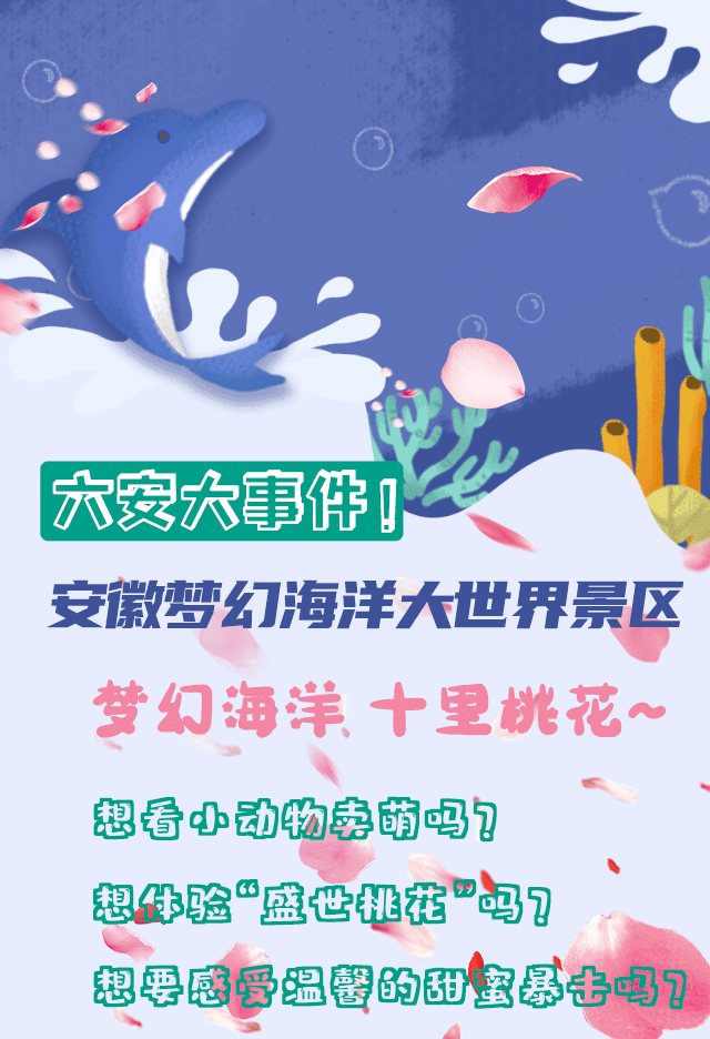5月1日—5月5日五一小長(zhǎng)假來(lái)臨之際,安徽夢(mèng)幻海洋大世界特別推出“十里桃花海”主題活動(dòng)。灼灼桃夭,炫麗繽紛,“水中桃花”亮相夢(mèng)幻海洋世界!