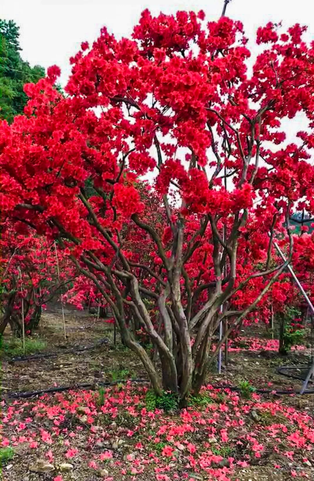 裕安區(qū)抹茶村里映山紅新蕾吐艷、姹紫嫣紅,花團(tuán)錦簇,美不勝收,除了漫山遍野的紅杜鵑,還能看到一顆千年牡丹王。