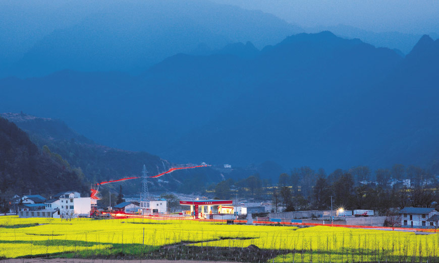圖為中國(guó)石油鄉(xiāng)村里的加油站