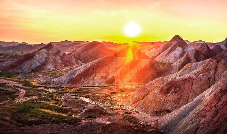 百里蘭州,西起河口,古鎮(zhèn)陲守,街巷祠堂參差錯(cuò)落,第一海關(guān)威嚴(yán)肅穆,左公柳威瑞向榮,恰似卷卷簡(jiǎn)牘,記載蘭州百年繁榮。水墨丹霞,毗鄰古鎮(zhèn),色如渥丹,燦若明霞,綿延百里,雄宏壯觀。由西漸東,苦水玫瑰,香溢十里;仁壽山下,桃林漫野;春風(fēng)吹拂,桃花綻放,萬(wàn)樹(shù)渲染,蝶舞飛揚(yáng)。繼而一路向陽(yáng),鮮百合暢銷四方,白蘭瓜食如甘飴,皆為饗人之佳品。行至城東,則北達(dá)青城古鎮(zhèn),南抵興隆疊翠。