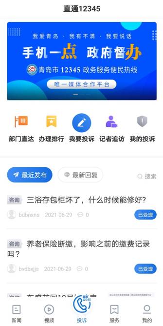 觀海新聞通過(guò)與青島市政務(wù)服務(wù)熱線12345聯(lián)動(dòng),共同打造全市網(wǎng)端投訴受理第一平臺(tái),企業(yè)和市民可通過(guò)觀海新聞客戶端留言、留音、留像,實(shí)現(xiàn)“手機(jī)一點(diǎn),政府督辦”。目前已開(kāi)設(shè)“我要投訴”“部門(mén)直達(dá)”“辦理排行”“記者追訪”“進(jìn)度查詢”等欄目,聽(tīng)民聲、解民憂,月均接收投訴建議1000多件,經(jīng)審核分類后直接轉(zhuǎn)至12345受理回復(fù)。同時(shí),與市政府辦公廳合作,融合升級(jí)“民生在線”欄目,開(kāi)通頻道,設(shè)置“圖解”、“短視頻在線”等專欄,圍繞市民及網(wǎng)友關(guān)注、投訴的熱點(diǎn),邀請(qǐng)相關(guān)部門(mén)進(jìn)行線上集中解答和線下專題辦理,形成提出問(wèn)題、研究問(wèn)題、解決問(wèn)題的閉環(huán),為市民辦實(shí)事。