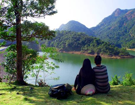 攀登至山頂即到了仙姑天池,也就是瀑布的源頭,放目遠望,一潭碧湖,萬木蔥蘢,清幽秀麗,美景天成。清風拂過,引皺一池綠水,甚是涼快。因為地處山區(qū),山上的溫度要比廣州市區(qū)低10度左右,在夏日里,可以享受這里難得的清爽。