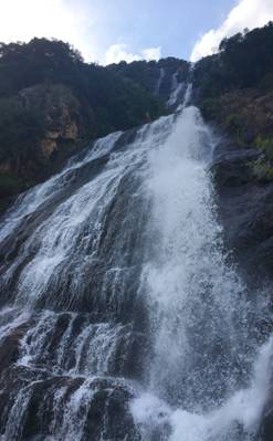 登上了3299級,就到了第三次零距離接觸瀑布的地方“沐瀑臺”。飛瀉而下的瀑布撞擊山石濺起了水花,伴著清風,激起了一層水霧,置身其中,沐浴山林水霧,感受天地自然靈氣。