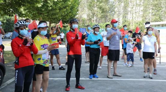 運動健兒們在完成了100米游泳、5200米自行車、5200米跑步三項運動后,運動員戴口罩來到中國航天科普六安基地,了解我國國防現(xiàn)代化、人民解放軍現(xiàn)代裝備,彈、箭、星、船、站航天系列展覽。在這次活動,有退役老兵、有現(xiàn)役軍人家屬,活動以鐵三運動的形式向偉大的中國人民解放軍致敬、向我們最可愛的人致敬。(圖文/馬健 朱仕躍)