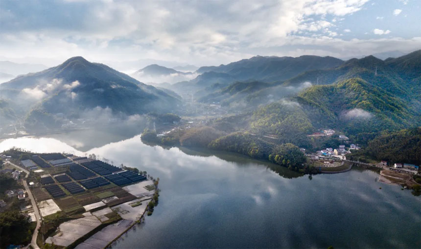 屋脊山,在霍山境內(nèi),離縣城大約15公里,因山形狀如屋脊而得名,屋脊山下是著名的佛子嶺水庫,山水相連,波瀾壯闊,蒼山、竹海、云霧、水影,把整個屋脊山裝扮得猶如仙境,每年都有大批的攝影愛好者來這里拍攝,所以這里又稱“攝影家的天堂”。