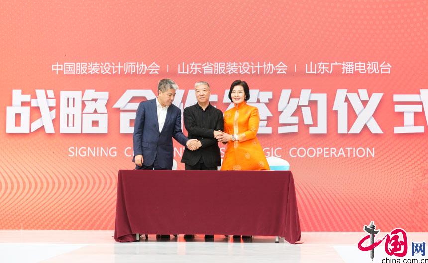 中國服裝設(shè)計(jì)師協(xié)會、山東廣播電視臺、山東省服裝設(shè)計(jì)協(xié)會三方簽署戰(zhàn)略合作協(xié)議 中國網(wǎng) 李康攝