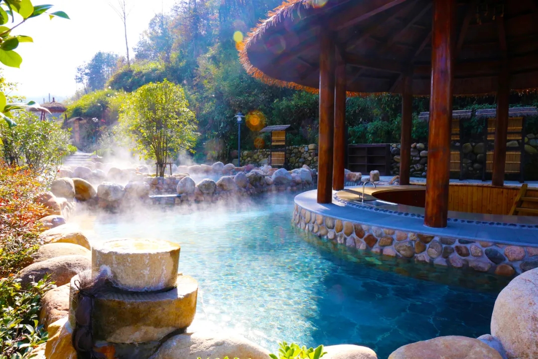 一步一景的陡沙河溫泉,老師們可在閑暇之余,來(lái)此放松緩解一下,園林式室外溫泉,清雅淡然,風(fēng)景怡然,放眼望去一片綠意,被山間竹林圍繞,宛如一幅水墨畫,韻味無(wú)窮。