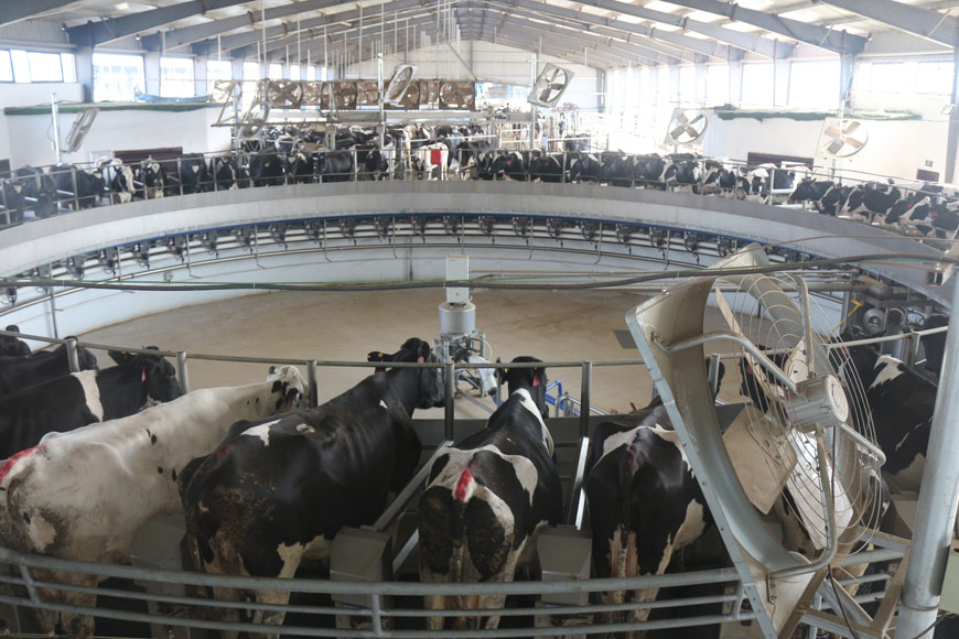 河南花花牛乳業(yè)集團股份有限公司是中國奶業(yè)二十強,是省級農(nóng)業(yè)產(chǎn)業(yè)化龍頭企業(yè)。新蔡瑞亞牧業(yè)有限公司黃樓牧場是其在新蔡投資建設(shè)的高端奶源基地之一,該牧場占地960余畝,總投資5億元,設(shè)計存欄純種荷斯坦奶牛5000頭,2017年5月建成投產(chǎn)。近年來,該企業(yè)通過金融扶貧平臺,帶動貧困戶4000戶,按照分紅模式,每年戶均收益3000元。吸納貧困群眾103人進廠就業(yè),每年增加群眾收入3萬元。該企業(yè)通過與當?shù)睾献魃绾炗営唵魏贤磕晔召徣昵噘A玉米1.5萬多畝,收購農(nóng)作物秸稈4萬多噸,每年可為當?shù)剞r(nóng)民增加收入3000多萬元,既促進了當?shù)剞r(nóng)業(yè)種植結(jié)構(gòu)調(diào)整,又解決了貧困家庭勞動力不足的問題,達到農(nóng)民增收農(nóng)業(yè)增效的目的。