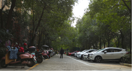 11月10日下午,記者來(lái)到肥西縣城東小區(qū),居民樓雖已上了年歲,但在林蔭樹(shù)的掩映下,整座小區(qū)幽然靜好。車輛有序停放在道路兩邊,腳邊的花壇里冒出嫰枝,公益廣告隨處可見(jiàn)。