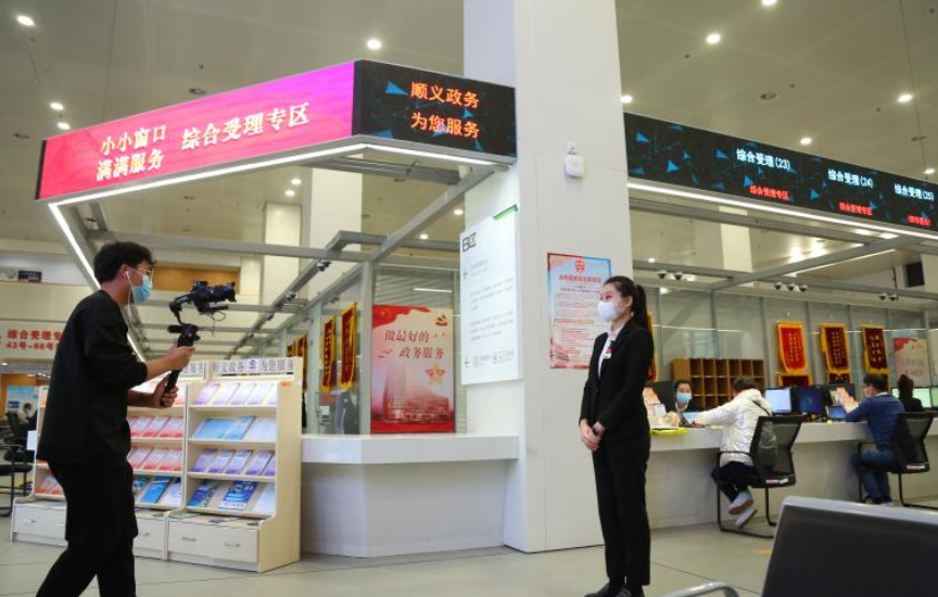 直播現(xiàn)場(chǎng),主持人帶領(lǐng)觀眾一同走進(jìn)順義區(qū)政務(wù)服務(wù)中心各專(zhuān)區(qū)、24小時(shí)自助服務(wù)區(qū)、“順手提”專(zhuān)區(qū),同時(shí)現(xiàn)場(chǎng)體驗(yàn)了3D智能導(dǎo)航系統(tǒng)、低位服務(wù)臺(tái)等各類(lèi)便民服務(wù)設(shè)施,零距離感受政務(wù)服務(wù)新發(fā)展,展現(xiàn)政務(wù)服務(wù)新風(fēng)貌。