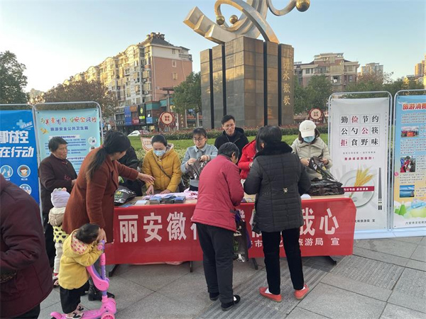 活動現(xiàn)場,文旅局工作人員向市民介紹六安市優(yōu)質(zhì)的文旅產(chǎn)品和服務(wù),詳細(xì)普及文明旅游、疫情防控等知識和技能,細(xì)致解說如何通過正規(guī)渠道獲得旅游產(chǎn)品、如何避免不合理低價游、怎樣維護旅游過程的自身權(quán)益等問題,在向市民贈送文明旅游宣傳品的同時積極宣傳“文明用餐”、“光盤行動”等綠色環(huán)保理念,引導(dǎo)旅游從業(yè)者和游客誠信經(jīng)營、文明出行。
