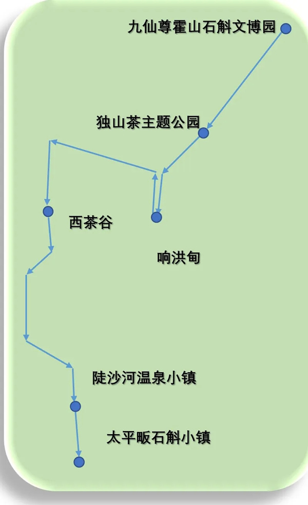 沿線景點(diǎn):六安市區(qū)→九仙尊霍山石斛文博園(迎賓大道)→51km→獨(dú)山茶主題公園→21km→響洪甸(齊頭山蝙蝠洞)→62km→西茶谷(油坊店鄉(xiāng)面沖村)→77km→陡沙河溫泉小鎮(zhèn)→20km→太平畈石斛小鎮(zhèn)