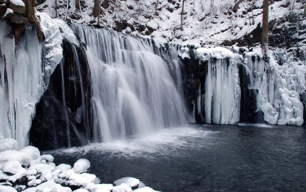雪中的峽谷景色壯麗無比,天地之間渾然一色,溪流瀑布撒落在一片銀色之中,千姿百態(tài),令人撲朔迷離,恍惚置身于童話世界中。