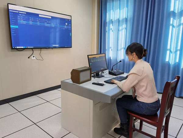 圖為鄉(xiāng)村播音員利用應(yīng)急廣播平臺(tái)發(fā)布通知