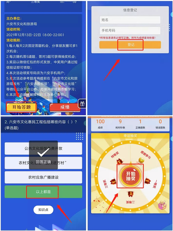 為進(jìn)一步強(qiáng)化文化惠民政策的宣傳和普及,營造良好的實(shí)施氛圍,不斷提升文化惠民工程群眾知曉度,滿意度,六安市文化和旅游局特開展“文化惠民為幸福加碼”民生工程有獎(jiǎng)問答活動(dòng)。