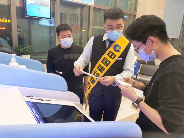 (企業(yè)財(cái)務(wù)人員在建設(shè)銀行綏芬河支行申領(lǐng)‘共享盾’)