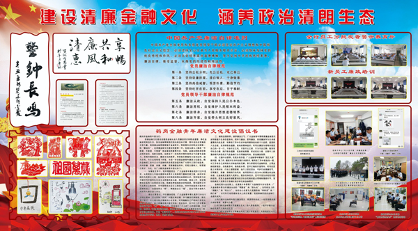 加強(qiáng)組織領(lǐng)導(dǎo)。該行專門成立了清廉金融文化建設(shè)領(lǐng)導(dǎo)小組,以融入黨風(fēng)廉政建設(shè)、融入政治監(jiān)督、融入內(nèi)控合規(guī)管理、融入員工日常行為管理、融入企業(yè)文化建設(shè)等“五個(gè)融入”為重點(diǎn),將清廉金融文化建設(shè)貫穿黨的建設(shè)和經(jīng)營管理工作各方面及全過程。