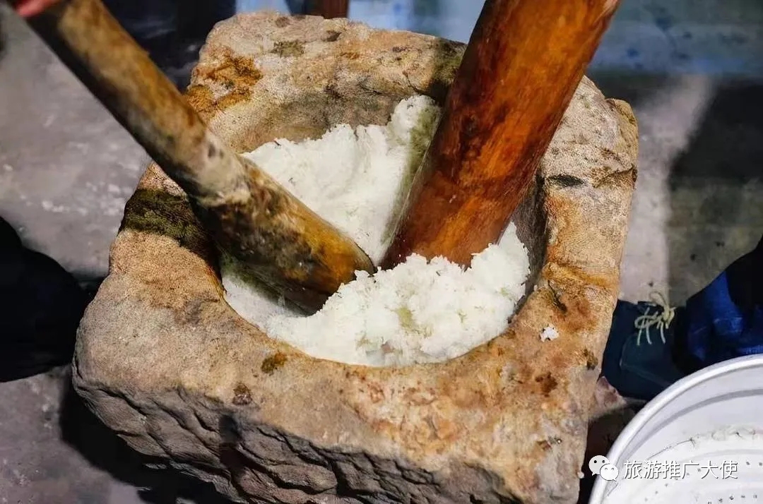 木甑中的蒸汽充盈著整個(gè)廚房,屋外都能聞到糯米飯的香味,二嫂說(shuō),打糍粑是個(gè)力氣活,每次打都要兩個(gè)男子漢幫忙。