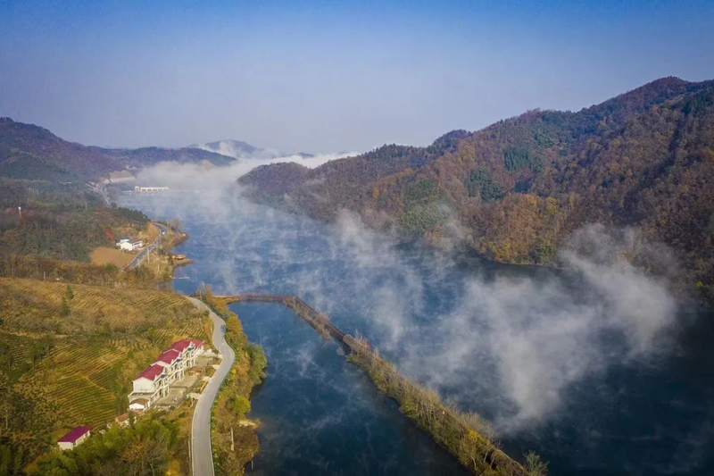 駐駕灣位于裕安區(qū)與金寨縣交界處,山清水秀,景色誘人,尤其是雨后、早晚或響洪甸水庫放水時(shí),這里云霧繚繞,如夢(mèng)似幻,像一顆璀璨的明珠,屹立在西淠河上!