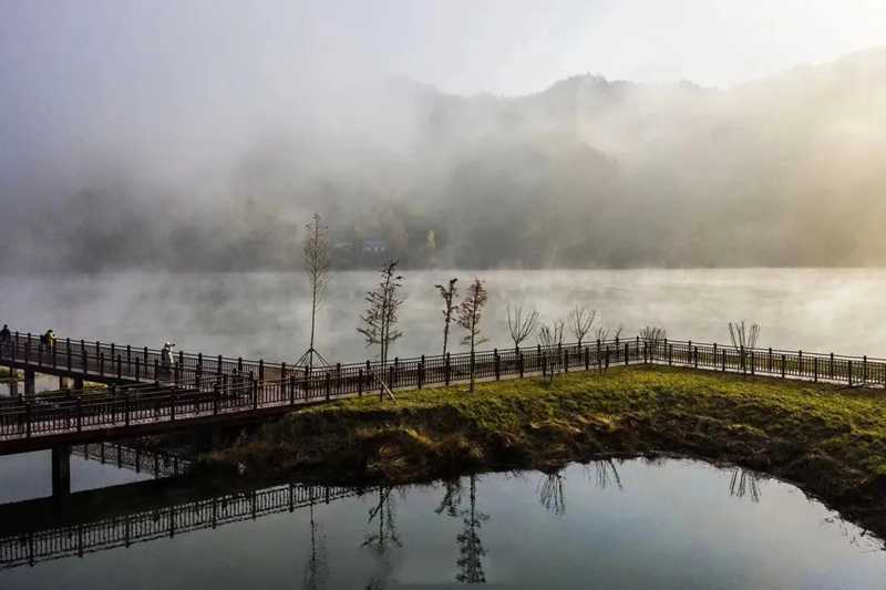 隨著一天時(shí)間的變化,你會(huì)感受到霧在山間游動(dòng),像畫家潑墨,使原來的山變成景,做成了一幅幅丹青。