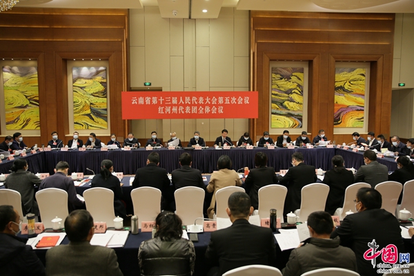參加云南省十三屆人大五次會(huì)議的紅河州代表團(tuán)舉行全體會(huì)議認(rèn)真審議省政府工作報(bào)告。云南省委副書記石玉鋼、云南副省長任軍號(hào)、紅河州州長羅萍、紅河州人大常委會(huì)主任普紹忠、紅河州人大常委會(huì)黨組書記李成武等人大代表參加審議并發(fā)言。紅河州委書記、代表團(tuán)團(tuán)長趙瑞君主持會(huì)議。