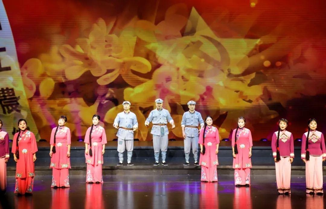 整場晚會在群舞《歡天喜地過大年》中拉開序幕,表演唱《鄉(xiāng)村振興歡樂多》、歌伴舞《綠水青山幸福來》、廣場舞《花開錦繡美如畫》集中展示了脫貧攻堅與鄉(xiāng)村振興有效銜接,皖西大地蓬勃發(fā)展的壯麗畫卷。情景劇《馨香一縷暖心田》聚焦抗疫主題,將疫情無情人有情,志愿服務暖人心的小故事歌頌每一位為抗疫貢獻力量的六安人;歌曲《文明創(chuàng)建你我他》生動展現(xiàn)了六安創(chuàng)建全國文明城市為百姓生活帶來的可喜變化?!栋嗽鹿鸹ū榈亻_》《英雄故事代代傳》《我有紅色傳家寶》充分展現(xiàn)了六安厚重的紅色底蘊,更展現(xiàn)了老區(qū)人民傳承大別山精神,賡續(xù)紅色血脈,將紅色江山代代傳承的精神底色。此外,還有廬劇表演唱《書房門前一支梅》、合唱《意氣風發(fā)少年時》等精彩節(jié)目輪番上演。最后,晚會在鼓舞《戰(zhàn)鼓催征勇向前》中圓滿落幕。