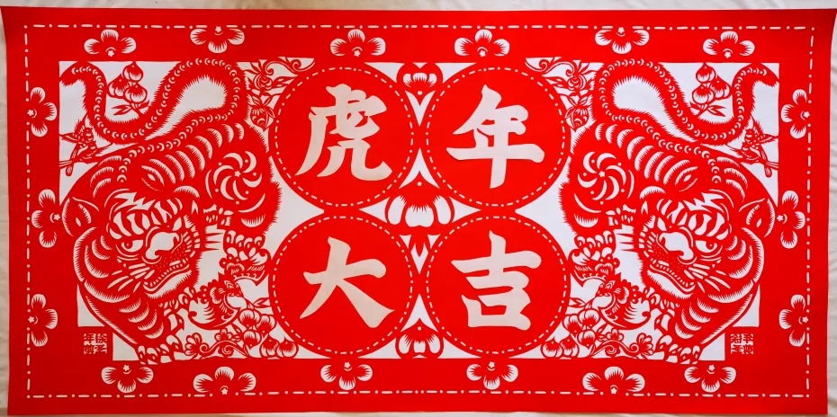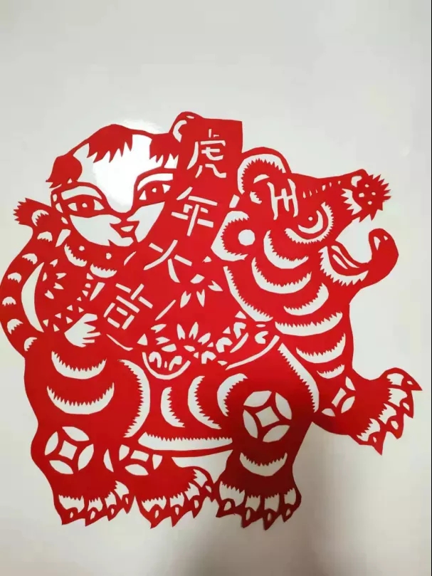 《虎年大吉》以剪紙的形式表達出虎年:虎虎生威,福(虎)壽安康!在新的2022年,我們的精神力量如虎的強壯、如虎的威武。2022壬寅是農歷虎年——虎年到來了,讓我們虎年話虎剪虎吧!