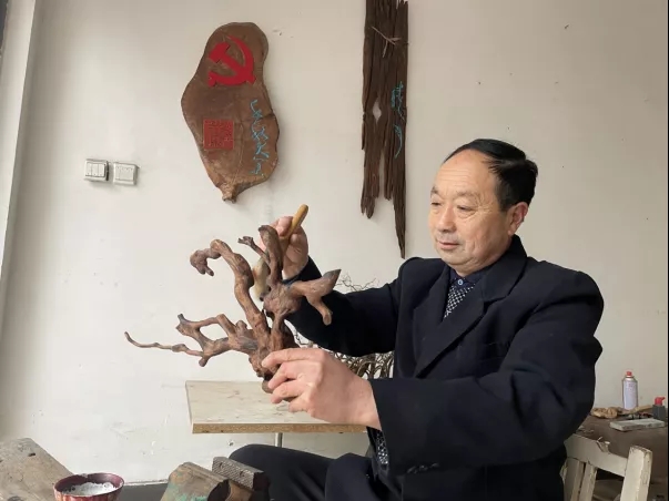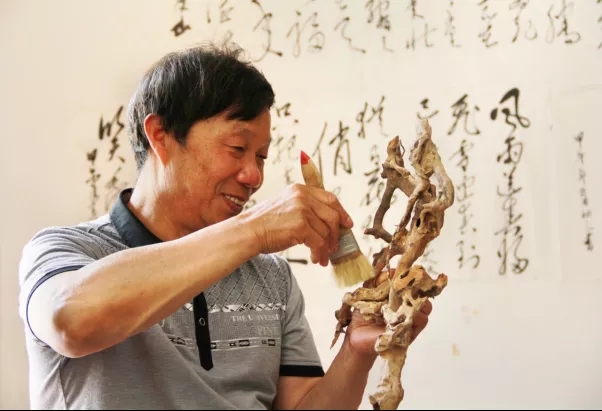 黎明,安徽省六安市霍山縣人,師從于市級傳承人陸洪琪。1976年從事教育事業(yè),歷任教師、校長,現(xiàn)已退休。1988年起,利用業(yè)余時間制作根藝作品,并探索、切磋、研討根書、根畫等藝術作品的構思與創(chuàng)作。