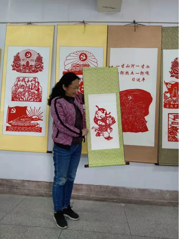 李玫,鄉(xiāng)鎮(zhèn)綜合文化站站長,從事鄉(xiāng)鎮(zhèn)文化工作二十多年。于2020年9月接觸剪紙藝術,在霍邱老年大學師從于市級非物質文化遺產項目代表性傳承人張玉柱。為了傳承和發(fā)揚剪紙這項非遺文化,同年12月,在本鎮(zhèn)復興少年宮開辦了剪紙興趣班,聘請本鎮(zhèn)民間剪紙高手為少年宮小朋友每周上一課,讓非遺傳承,從娃娃開始。