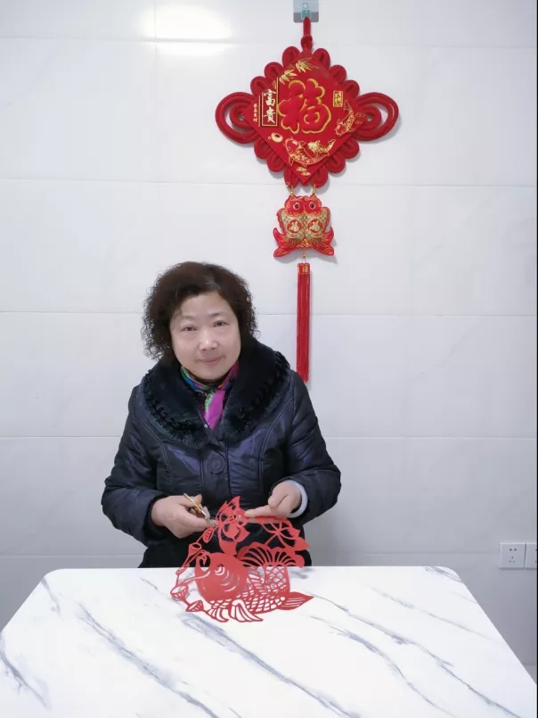 吳章卉,師從縣級非遺傳承人孫潤學習剪紙。退休后,她無意間接觸到剪紙文化,有感于剪紙文化傳承賡續(xù)的視覺形象和造型格式,認為剪紙?zhí)N含了豐富的文化歷史信息,具有認知、教化、表意、抒情、娛樂、交往等多重社會價值,也充滿了人們對美滿幸福生活的渴求與追求。