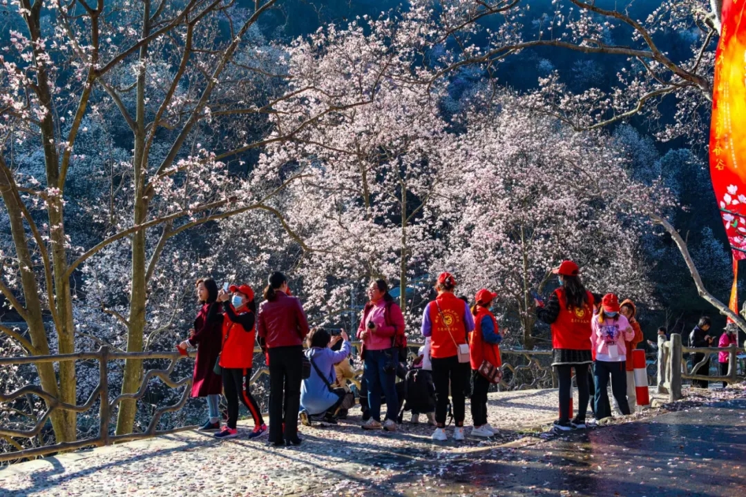 望春谷望春花品種,以粉白為主,林間也常見(jiàn)紫紅色,偶爾會(huì)見(jiàn)到稀少的綠色。樹齡以百年左右居多,500年樹齡的有近百棵,走進(jìn)望春谷,你就置身于望春盆景大觀園,雖然大大小小的樹木沒(méi)有奇特的造型,但面積之大、香氣之濃、花開(kāi)之艷,是你在任何地方都無(wú)法體驗(yàn)和感受到的,“幽蘭在山谷,本自無(wú)人識(shí),只為馨香重,求者遍山隅”,寥寥詩(shī)句,囊括了望春谷曠世美景和游人觀景的感受。