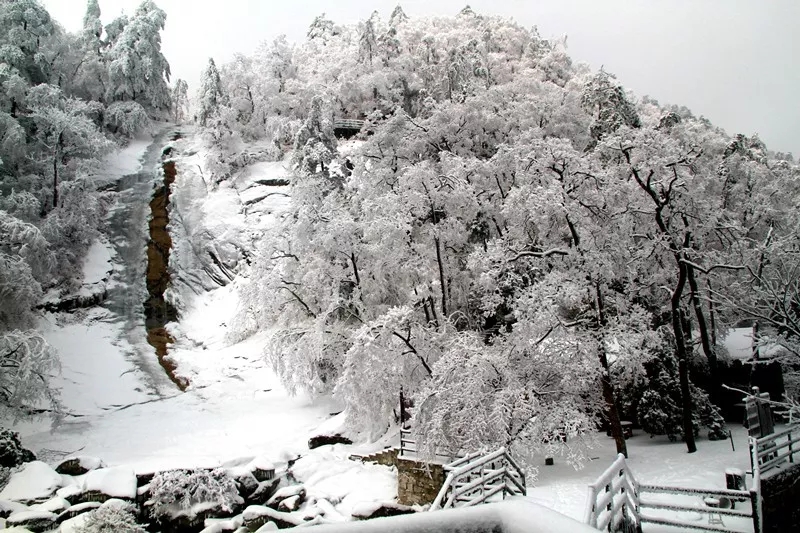 雖以時(shí)序春季,但天堂寨的冬卻遲遲不肯離去,雪花也總會(huì)頻頻到訪,似乎一伸手,一朵雪花就能在掌心燦然開放。