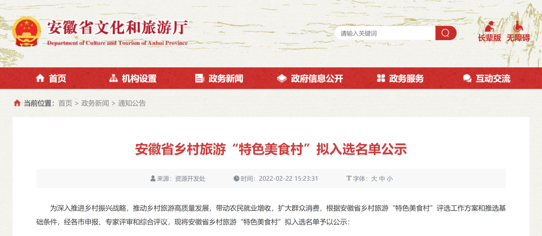 為深入推進(jìn)鄉(xiāng)村振興戰(zhàn)略,推動(dòng)鄉(xiāng)村旅游高質(zhì)量發(fā)展,帶動(dòng)農(nóng)民就業(yè)增收,擴(kuò)大群眾消費(fèi),根據(jù)安徽省鄉(xiāng)村旅游“特色美食村”評(píng)選工作方案和推選基礎(chǔ)條件,經(jīng)各市申報(bào)、專(zhuān)家評(píng)審和綜合評(píng)議,現(xiàn)將安徽省鄉(xiāng)村旅游“特色美食村”擬入選名單予以公示: