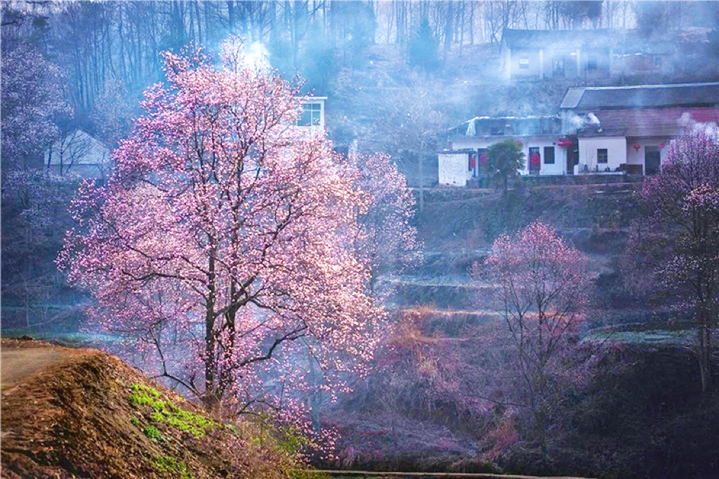 望春谷位于金寨縣鐵沖鄉(xiāng)境內(nèi),是目前世界上規(guī)模最大的純野生望春花原生帶,全谷由北向南10千米,面積2000公頃,谷內(nèi)樹齡在百年以上的望春樹有3000余株,可觀賞的望春樹達(dá)10萬株。望春花是春天的使者,是大別山第一抹春色,花色以白色為主,間有少量紅色,每年元宵節(jié)后,競相開放,紅白相襯,清新?lián)浔?,唯美?dòng)人,花期一直持續(xù)到清明節(jié)。