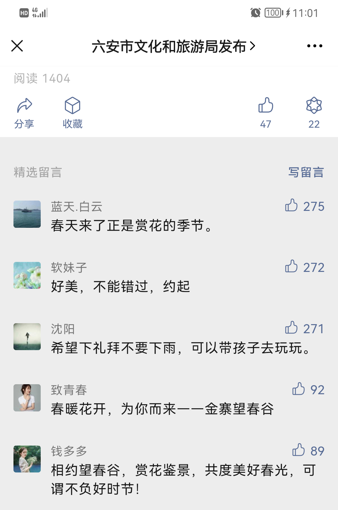 為回饋廣大網(wǎng)民朋友,六安市文旅局公眾號舉辦了“文末留言送六安文旅大禮包”活動。