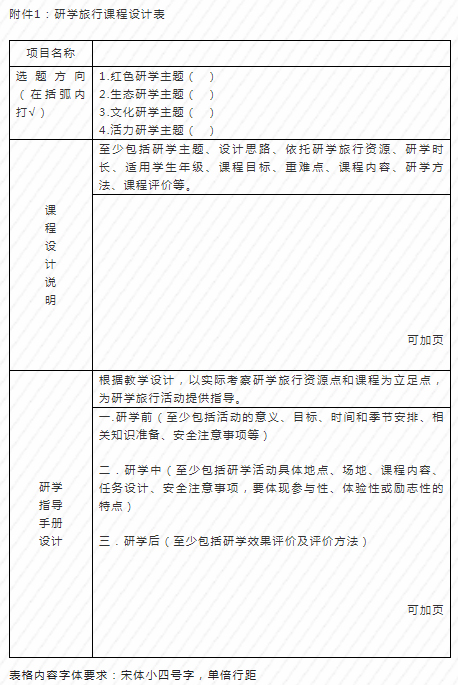 參賽作品具體正文格式參照:附件1:研學(xué)旅行課程設(shè)計(jì)表;附件2:研學(xué)旅游線路設(shè)計(jì)表;附件3:研學(xué)旅行實(shí)踐空間設(shè)計(jì)表。