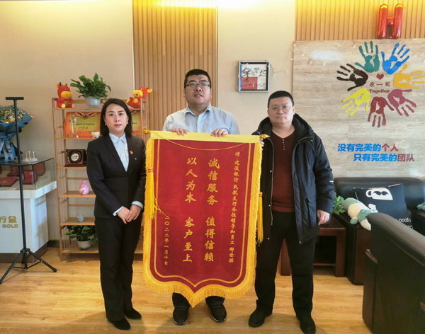 把好“質(zhì)效關(guān)”,為企業(yè)快辦事。1月29日,春節(jié)即將到來之際,建設(shè)銀行哈爾濱藍天嘉園支行迎來了前來贈送錦旗的客戶陳先生。陳先生是哈爾濱市一家教育培訓(xùn)機構(gòu)的財務(wù)負責(zé)人。由于國家實施“雙減”政策,該機構(gòu)的經(jīng)營方式發(fā)生了改變,需要在教育局規(guī)定的時間內(nèi)及時完成賬戶開立和簽約工作。由于時間緊、業(yè)務(wù)新,作為經(jīng)辦員的客戶經(jīng)理小陳一邊學(xué)習(xí)一邊辦理,不僅上班時間加班加點,還利用班后時間研究文件,與相關(guān)業(yè)務(wù)部門溝通辦理流程,終于在規(guī)定時間內(nèi)為該機構(gòu)成功辦理了相關(guān)手續(xù)。網(wǎng)點負責(zé)人郭長虹表示,支行將秉持優(yōu)質(zhì)、高效的服務(wù)理念,為客戶提供更好的服務(wù),從更多元的角度助力企業(yè)發(fā)展,服務(wù)大眾民生。