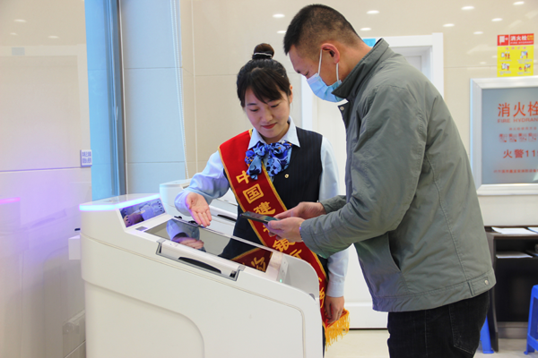 (在“金融消保知識宣傳”活動中,工作人員正在向客戶講解假幣識別技巧)