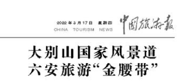 《中國(guó)旅游報(bào)》長(zhǎng)篇幅報(bào)道了大別山國(guó)家風(fēng)景道,稱之“六安旅游‘金腰帶’”——大別山國(guó)家風(fēng)景道:六安旅游“金腰帶”。全文吐下: