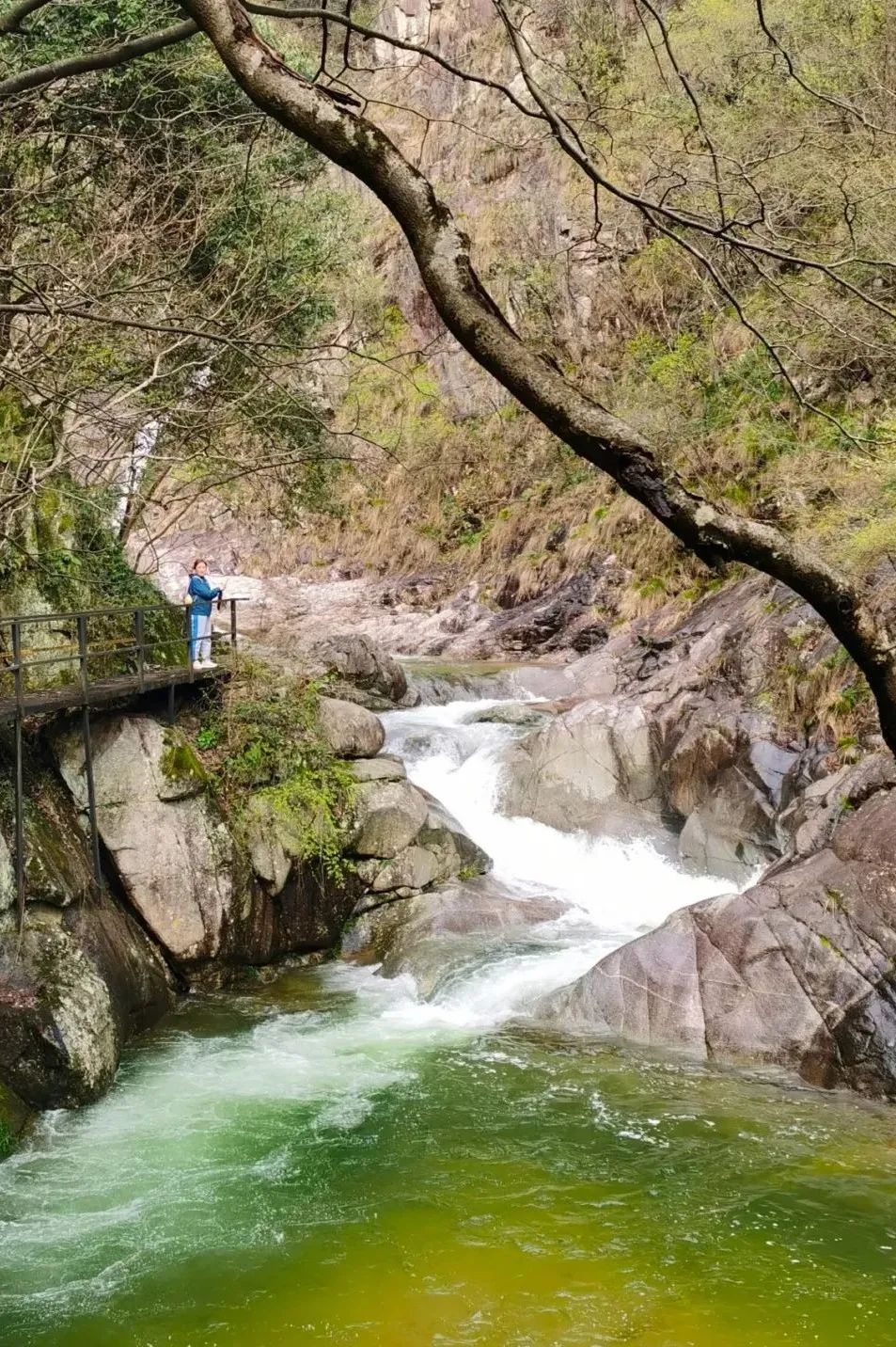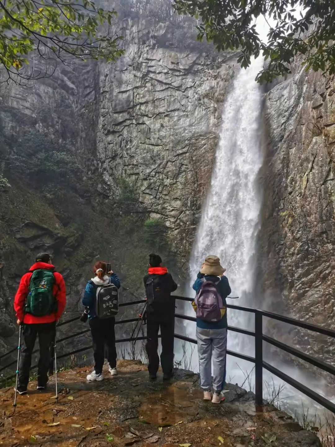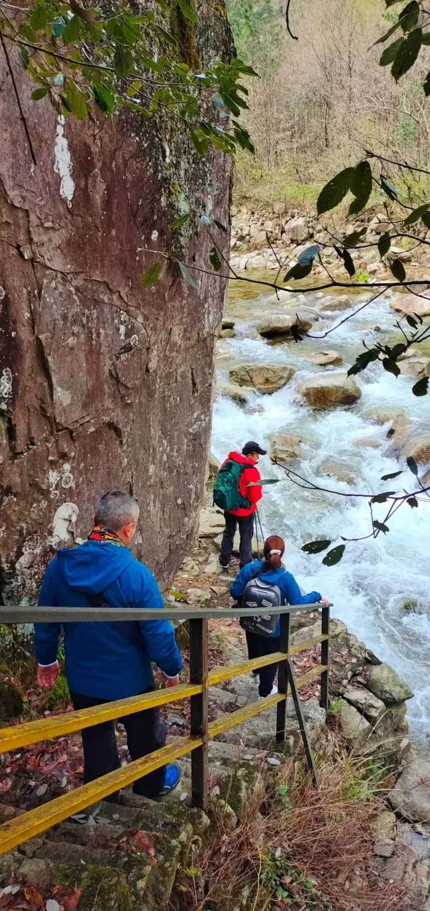 陽(yáng)春三月,乍暖還寒,六安旅游推廣大使一行人來(lái)到了龍井峽,在堆谷山村部附近找了一家民宿,匆匆放下行李,便迫不及待地讓民宿老板做向?qū)В瑤覀冞M(jìn)山來(lái)看瀑布。