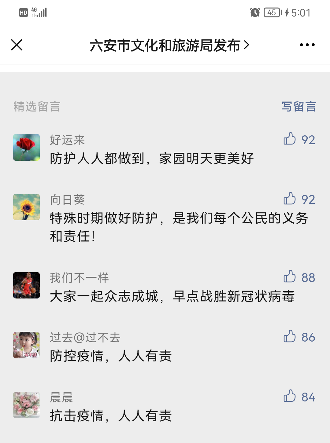 為回饋廣大網(wǎng)民朋友,六安市文旅局公眾號(hào)舉辦了“文末留言送六安文旅大禮包”活動(dòng)。