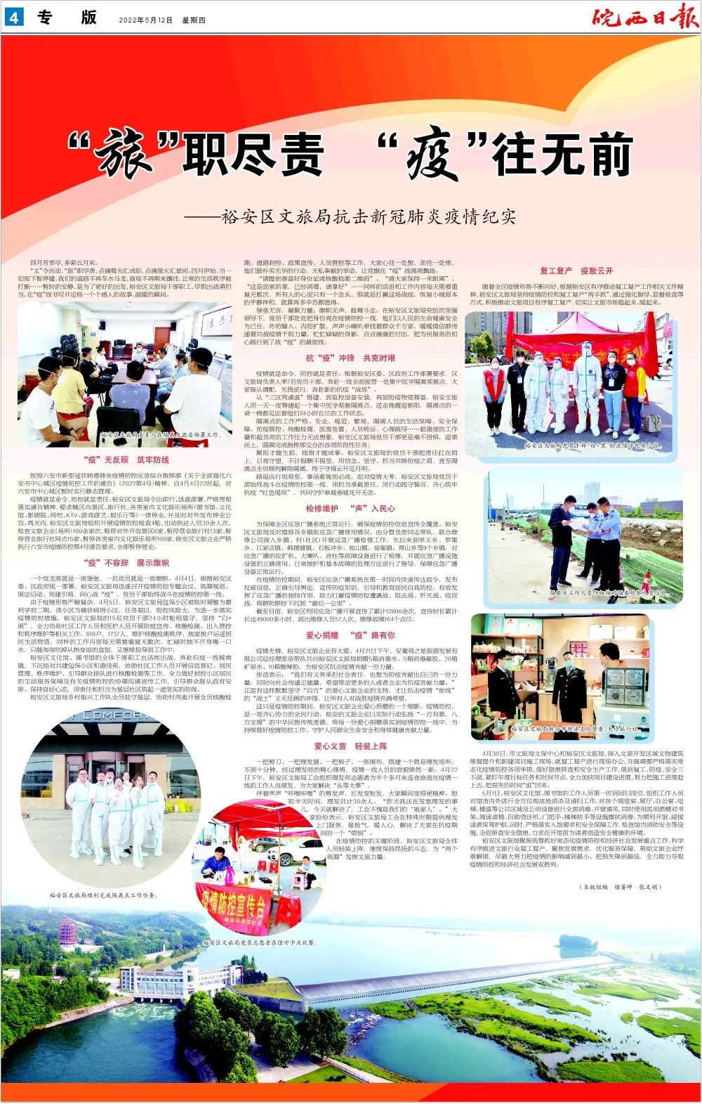 “文”令而動(dòng),“旅”職盡責(zé),點(diǎn)滴微光匯成炬,點(diǎn)滴螢火匯星河。四月伊始,當(dāng)一切按下暫停鍵,我們的道路不再車水馬龍,商場(chǎng)不再熙來攘往,正常的生活秩序被打斷……暫時(shí)的安靜,是為了更好的出發(fā),裕安區(qū)文旅局干部職工,盡銳出戰(zhàn)勇?lián)?dāng),在“疫”線書寫并定格一個(gè)個(gè)感人的故事、溫暖的瞬間。
