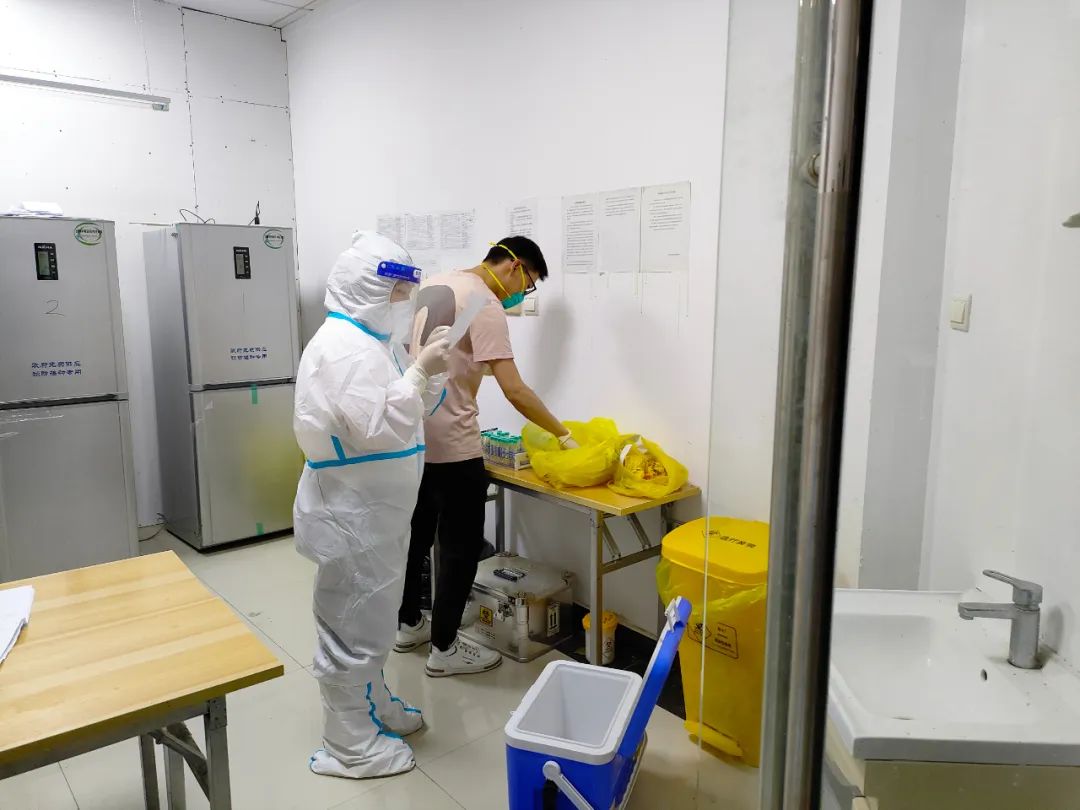 隔離點(diǎn)值守人員認(rèn)真核對(duì)送檢的核酸樣本。